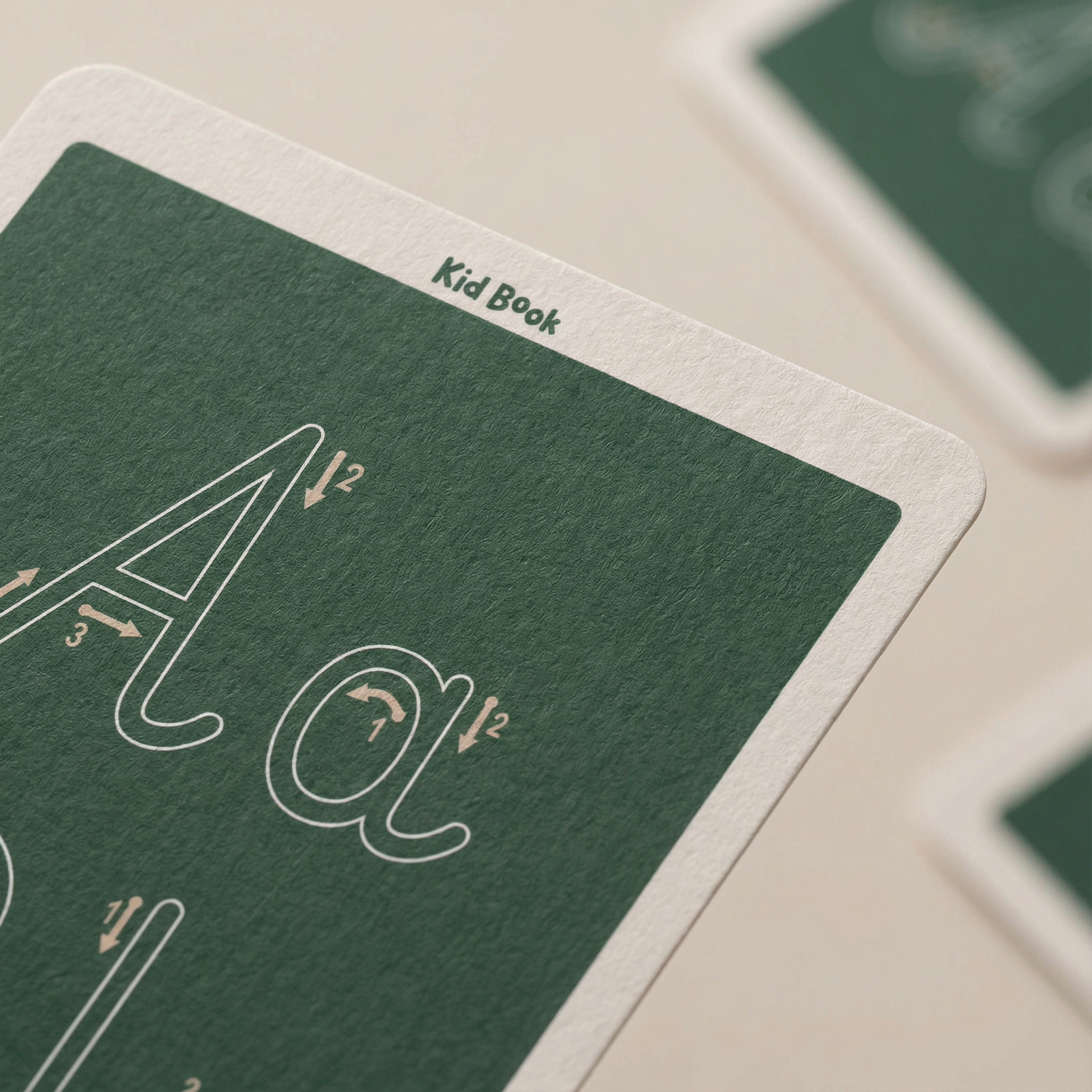 Das bewusst gewählte dunkle Kartenlayout mit doppelter Linienführung sorgt dafür, dass Kinder genau erkennen, wo sie den Stift führen sollen. Das ist ein entscheidender Vorteil gegenüber hellen Karten mit nur einer Linie, die das Lernen oft erschweren und visuelle Unruhe erzeugen.